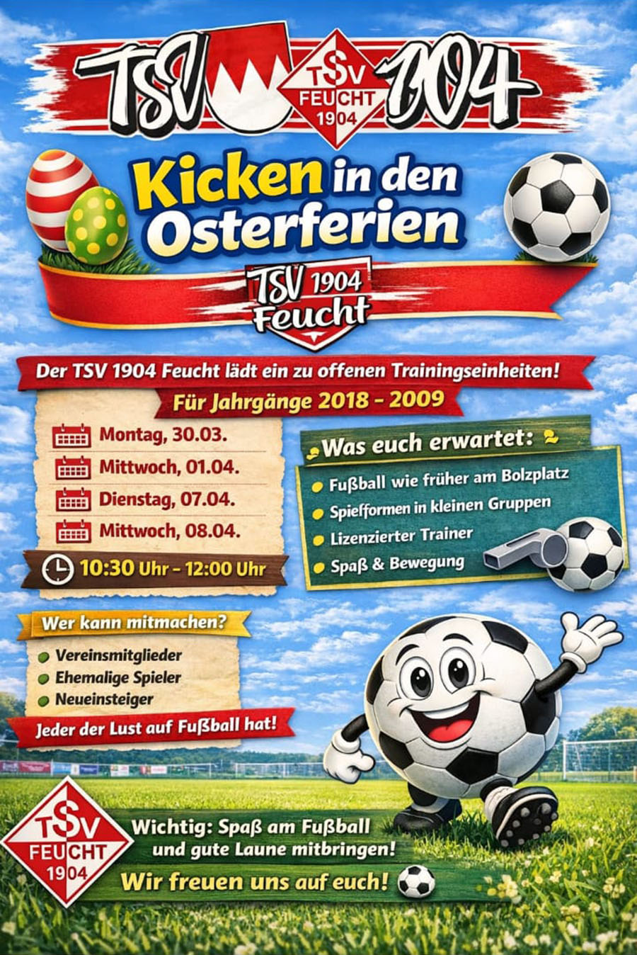 Kicken in den Osterferien für Vereinsmitglieder, Ehemalige Spieler und Neueinsteiger!